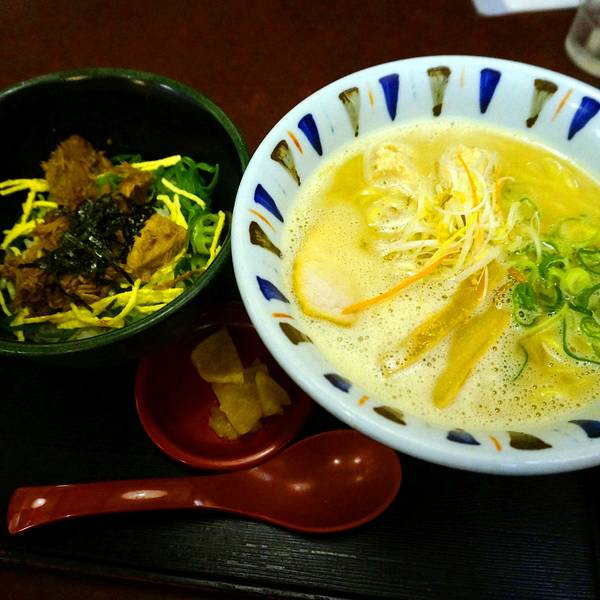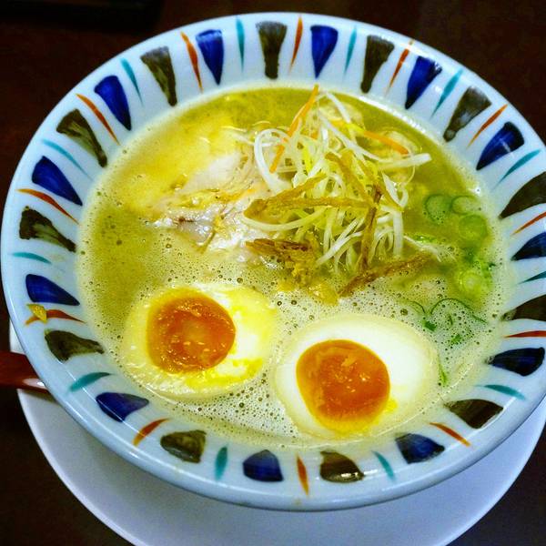 店面极为狭窄,一不小心就容易错过。隐藏菜单是先吃招牌拉面,剩下汤底做杂炊(杂炊就是泡饭)。和大部分日式拉面不同,它家的拉面是以大和鸡为汤底,面汤呈白浊色,入口浓郁但不腻味。第一次来可以尝试鸡白汤拉面,记得加点店内推荐的柚子胡椒粉试试!