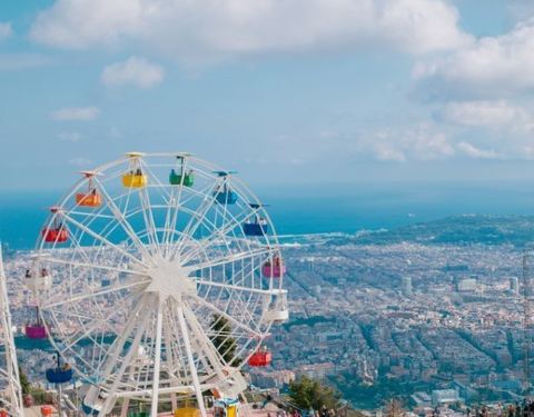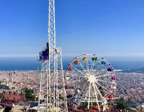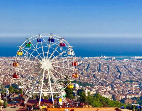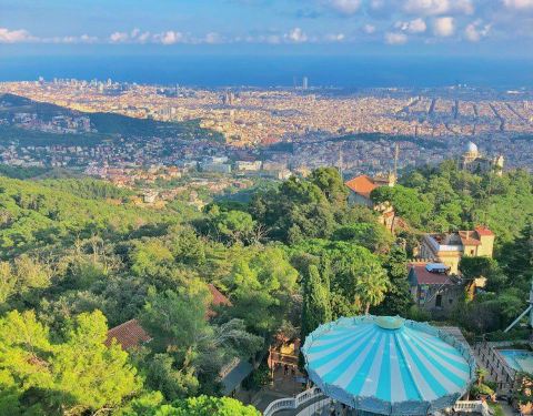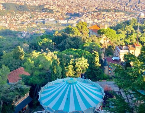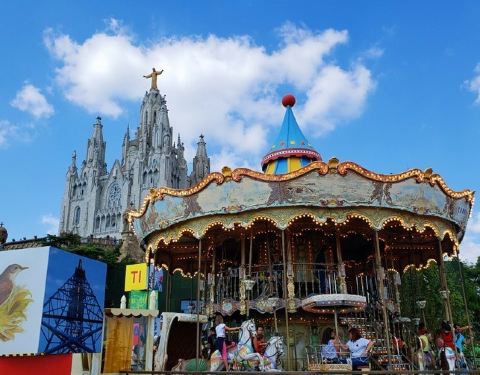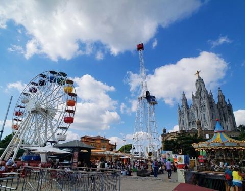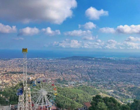 从那里可遥望地中海、俯瞰整个巴塞罗那,山顶的圣心教堂高耸入云,显得极为神圣,山上还有一座大型游乐场