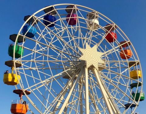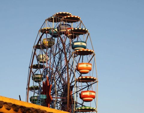 不是特别大,但是常规的像旋转木马,摩天轮这些都有,而且最棒的是它处于山顶,一边体验游乐项目,一...小清新的一个游乐场,不是特别大,但是常规的像旋转木马,摩天轮这些都有,而且最棒的是它处于山顶,一边体验游乐项目,一边观赏美景,很舒服。