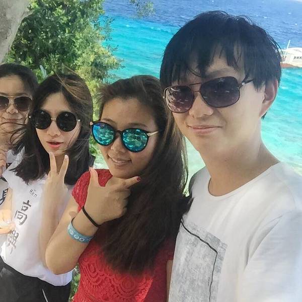 水瓶座先生玩得非常的hi。我们本来打算也这样一跳,可是果小姐说先潜水,然后就忘记了。事实告诉我们想就去做,不然忘记了怎么办让你们师徒二人合拍一张,哈哈~~我们心心念念想寻找的鲨鱼宝宝,可惜直到离开这个岛屿还是没有遇上。