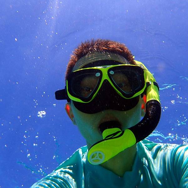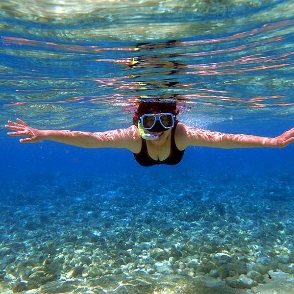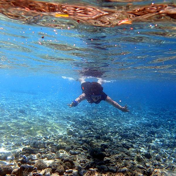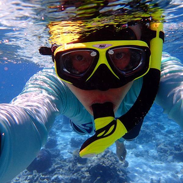 一直以为自己是旱鸭子,原来不是在这一片海我终于脱下那个救生衣,自由的畅游。我更喜欢是慢慢欣赏,而不是游得飞快,所以我永远都在他们两个的后面。吃脸泡泡~
