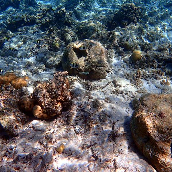 真的是看缘分啊,但愿你们都有这么幸运能看到自己想看的东西吧1晚上的浮潜点,已经开始退潮。果小姐说:“我要在这里从白晒到黑。‘