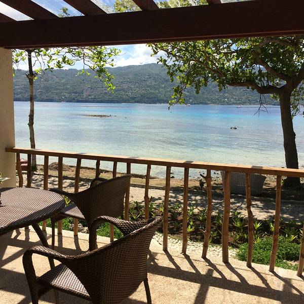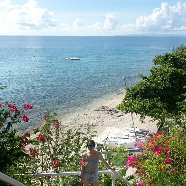 去海里浮潜看到的沙滩,近海水质也很好,但是底下有很多珊瑚,所以最好穿蛙鞋或者潜水袜,防止脚底割伤。从宿务岛的码头就可以看到右前方的苏米龙岛了。近海有很多礁石。酒店这一区是私人的,一日游的游客不得进入,房间门口都有小阳台,推开门就可以看到海。 展开
