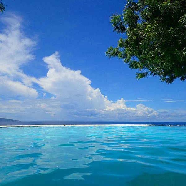 上岛不允许带任何的食物,每个人的包包都会检查,会被安置在码头待返程时领走就好船刚驶出码头,大海呈现深层次的蓝,待船渐渐靠近小岛,海水又变幻出了另一种浅绿色的蓝!水是蓝的天是蓝的,这种蓝让我知道了为什么要来苏米龙了自助午餐大多是油炸食品,由于岛上淡水缺乏淡水,所以一人只能拿一杯碳酸饮料!岛上为住客和一日游观光客提供无边泳池,泳池边际与大海相平行,在这里游泳逼格都高出来不少光在泳池哪行啊,这么蓝的水,不下海怎么对得起自己,岛上免费提供浮潜三宝和救生衣,一头扎进海水里,哇好多珊瑚和尼莫阿姨们看了昨天在APO岛拍的水下照片,后悔莫及,发誓今天无论如何也要下水!刚刚在奥布斯洛,三个妈很果断的买了不下水的票,到了苏米龙,看到这么蓝的水,心中有个声音告诉她们,不能忍了!!!
