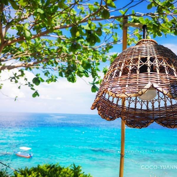 4.听说各大网站都会有跳岛游在这儿发呆一下午,也是一件挺浪漫的事蓝水岛度假村专属码头,跳岛游是不可以从这里上船的。蓝水度假村专属的船准备登岛的兴奋一杯西瓜汁,开启苏米龙的一天。早上的苏米龙岛跳岛游客还没到,我们可以享受这一刻的宁静与写意。连自拍都是姑娘我拿相机,你们两个能主动点吗?果小姐背后就是沙滩,和浮潜点。希望下一次你能脱下救生衣和我们一起