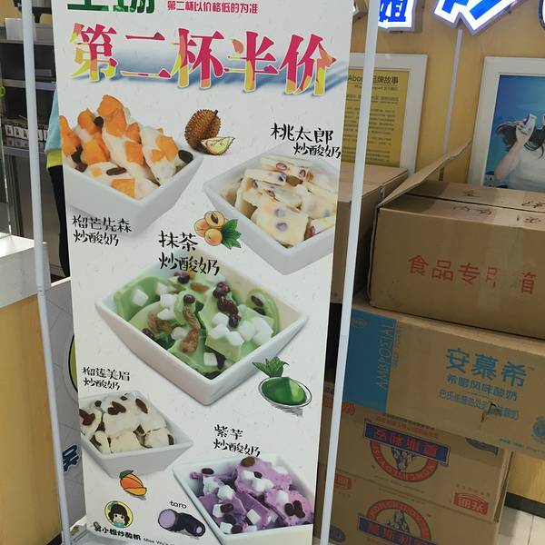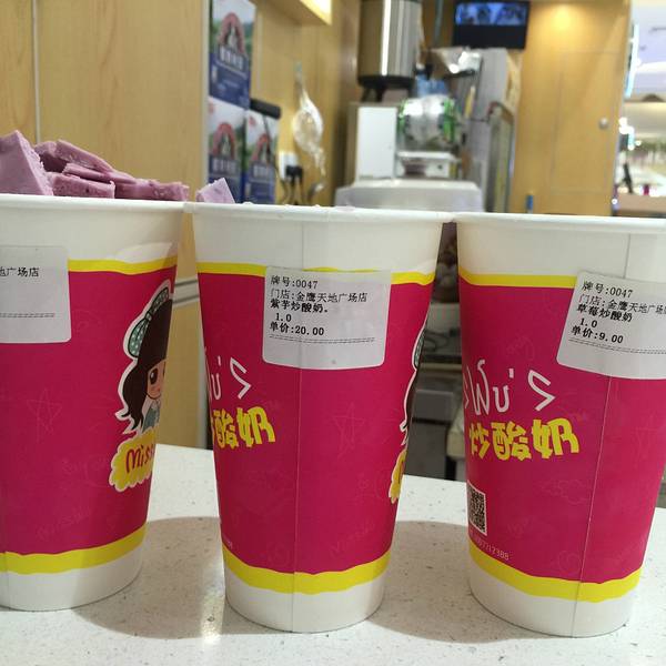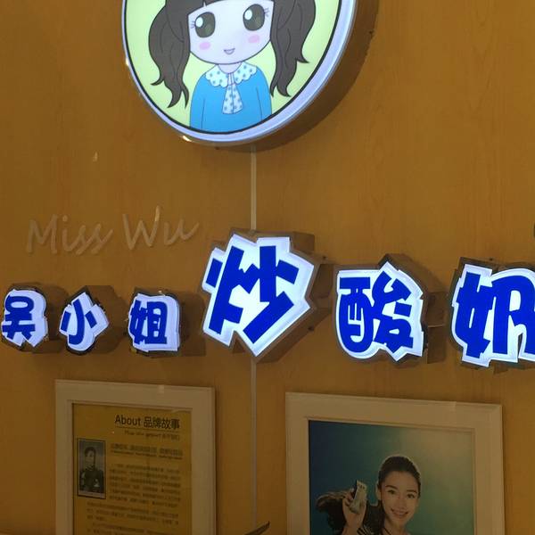吴小姐炒酸奶,在金鹰广场的负一楼,中间的位置,周围都是卖吃的。位置好找,环境也卫生干净。炒酸奶,先是…