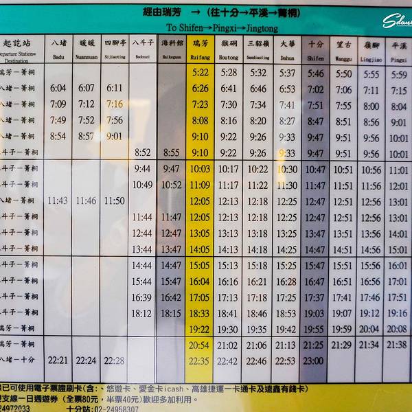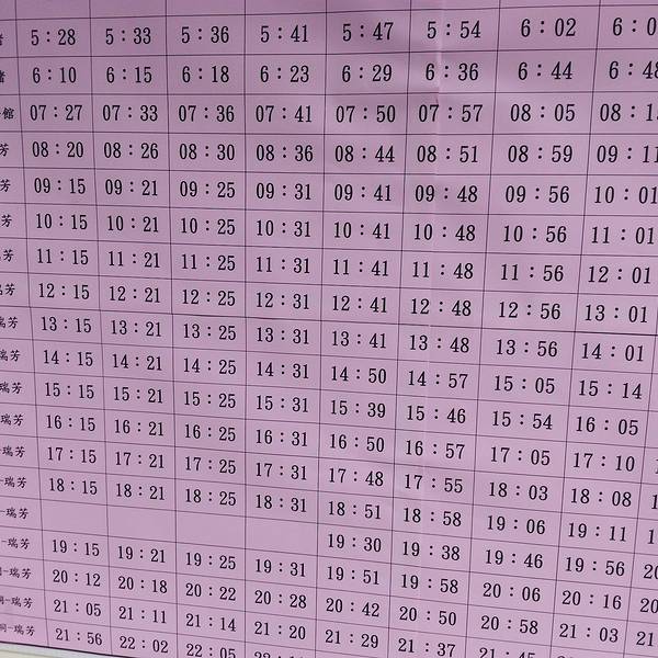 九份线:从瑞芳火车站出来就有客车去九份,但不是瑞芳车站门口的那个车站,要往左走一段路~瑞芳到九份的客车大概15-20分钟,票价大概在15台币左右。复古的火车瑞芳站大叔给我们规划的时间