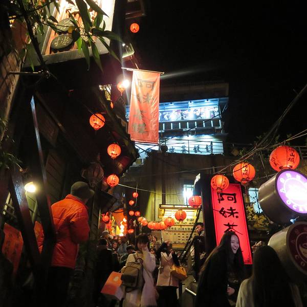 平溪 - 休闲的市井小村 坐车来到平溪线的最后一站,平溪站,貌似这里是《那些年》的拍摄地点,如果没有一批一批的游客,这里确实会是一个市井但悠闲的好地方平溪的一大景观就是有着漂亮涂装的平溪线从悬空在村子的铁路桥上慢慢开过,只可惜当我看到的时候,离铁道桥太远,只能远远地记录下这一景致。回瑞芳的时候只能做光复号,不过车也很少,所以看到时间差不多了,就赶紧上车回到瑞芳,从瑞芳火车站可以选择大巴或者打车去九份山城