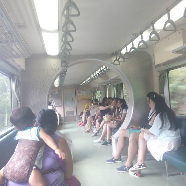 说了这么多话了,那就照个像留个念呗~~于是请车上对面当地阿姨帮忙照了一张。只可惜这技术。。。。。。。另外经常看到有游记里写平溪线小火车有多挤多挤,我有个刚从台湾回来的朋友也说让俺注意提前往外换免得万一下不去车神马神马的。然后俺就发了这张照片过去哈哈哈哈。。。。。。