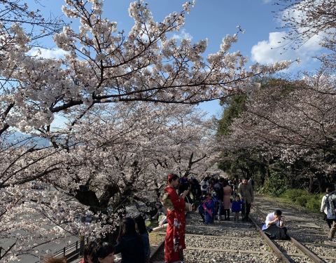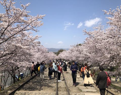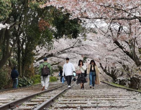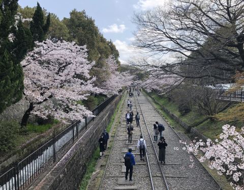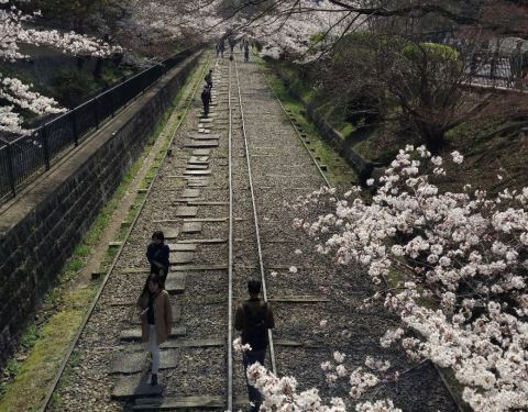 沿着铁路往下走,是琵琶湖疏水,可以连着附近的一些寺庙一起游玩。如果是非樱花季节去,估计看头不大一段不使用的铁道,两旁种满樱花树,我是樱花季去的,特美!如果是非樱花季节去,估计看头不大。沿着铁路往下走,是琵琶湖疏水,可以连着附近的一些寺庙一起游玩。
