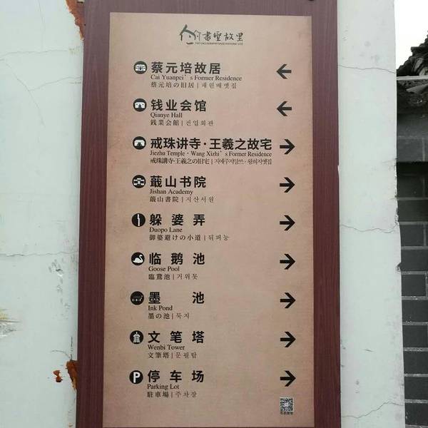 我们好歹也算来过一次,算作是到此一游吧。可惜已是傍晚,都关门了。走大约100米,王羲之故居在绍兴市的越城区,是王羲之在这里隐居练字的地方,门前有一个池塘,叫做“墨池”,是王羲之洗笔的地方。话说2018年5月20日的傍晚,我们沿着解放路步入一条老街,见到一个笔飞弄的小胡同,便走进去,在...王羲之故居在绍兴市的越城区,是王羲之在这里隐居练字的地方,门前有一个池塘,叫做“墨池”,是王羲之洗笔的地方。话说2018年5月20日的傍晚,我们沿着解放路步入一条老街,见到一个笔飞弄的小胡同,便走进去,在小路的拐角处,有个指示牌沿着这条路右转,走大约100米,路边有卖“躲婆饼”的,据说是王羲之躲避老太太题写扇面,而躲在桥下吃的饼。小路走到头,再左转沿着这条路走大约50米就到了。可惜已是傍晚,都关门了我们只好在门前拍照留念,王羲之故宅前有一个池塘,非常的不起眼,当地人介绍说是“墨池”,难道这就是大名鼎鼎的墨池吗?只见池塘不是很大,半亩见方的样子,四周都是民居,墙壁上,有2个黑字“墨池”回首再看一眼关闭的大门我们好歹也算来过一次,算作是到此一游吧。 展开