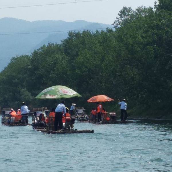 离岩头镇大约800米,我们是下午4点去的,为了避开高峰期和毒辣的日头。码头很简易,1-4人一条竹筏,280元。因为没有人和我们一起坐,只能花280元,坐到狮子岩。大约40分钟。沿途风景一般,没有阳朔的遇龙河漂流风景好。时间也短。