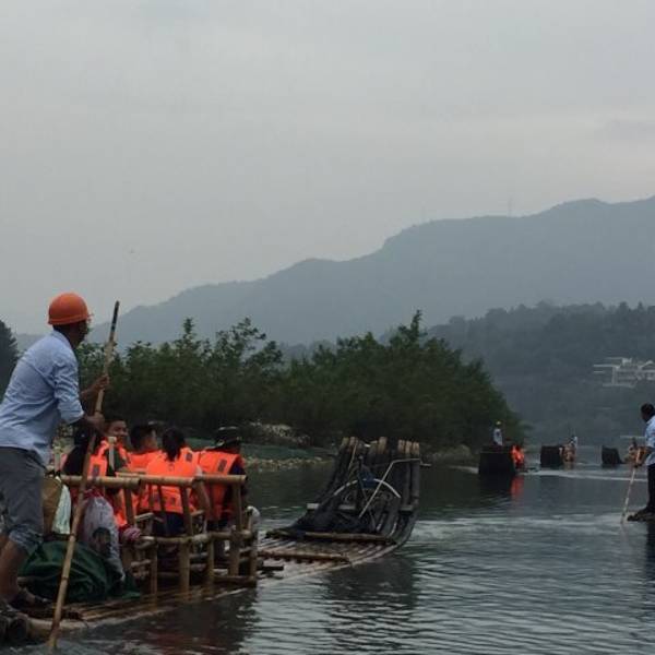 门票价格:55元 曾读过一首诗,非常喜欢。乘坐竹筏游览楠溪江是最好的方式!乘竹筏出发咯