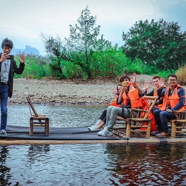 因为没有人和我们一起坐,只能花280元,坐到狮子岩。沿途风景一般,没有阳朔的遇龙河漂流风景好
