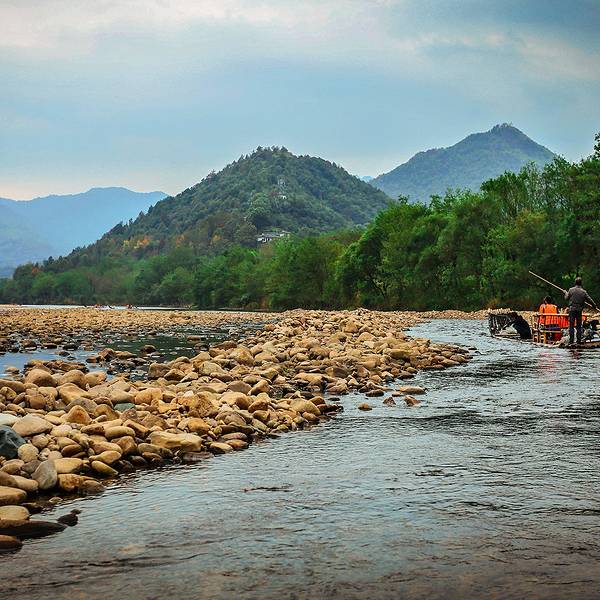 楠溪江国家重点风景名胜区,总面积625平方公里,位于浙江省永嘉县境内,东临雁荡山风景区,南距温州市23公里,楠溪江漂流最大特色便是竹筏漂流。楠溪江悠悠三百里自然风光,山灵水秀、逶迤曲折、有36湾、72滩。江水清澈、秀丽多姿,水面宽而浅,一般水深1米左右,少数深潭可达数米。滩虽偶有急流但不凶险,且潭水平静、江边景色如画,十分适宜竹筏漂流。