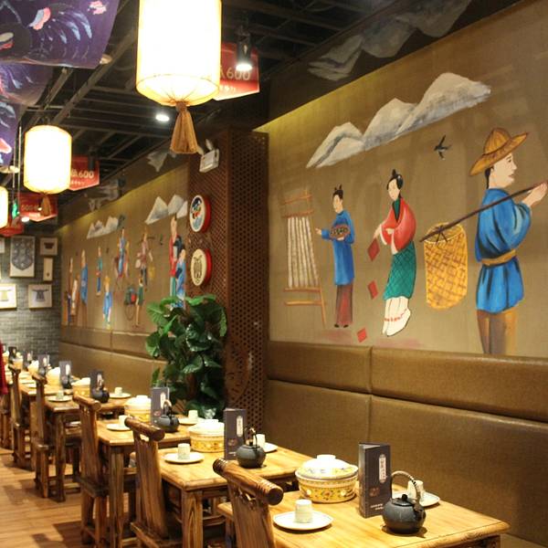 店内陈设仿佛置身电视剧大宅门中店内的服务员全都穿着花衣服,桌椅让人有种置身古代的客栈的感觉。放着小曲…