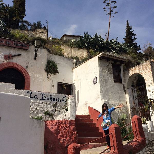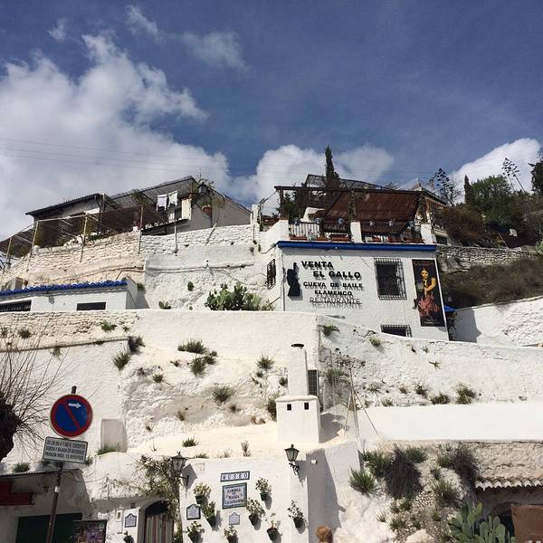 这里是以前吉普赛人的居住区,他们在山坡的软岩上挖洞穴(Cueva)并逐渐在这里安定下来。大多数都被粉刷成白色,有些洞穴条件好也配备了现代设施,可以参观。在高处也有许多被遗弃的洞穴,现在成了嬉皮士和流浪汉的居所,不通水电,需要点煤灯和上山挑水,但是他们却悠然自得。