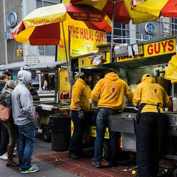 现代艺术博物馆旁边的街边餐车,有很有名的阿拉伯小吃,餐车前总是大排长队,昵称“饭上鸡”。