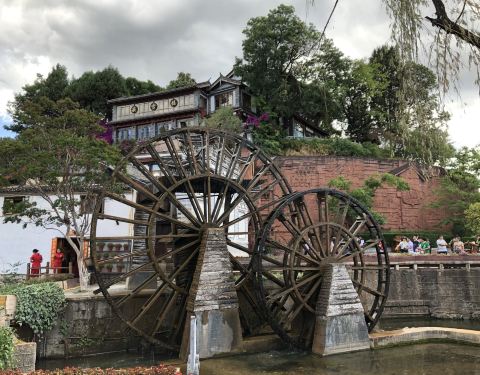 玉河广场是丽江古城的一个广场,丽江古城是丽江旅游必不可少的景区,在市中心,玉河广场就在古城北侧,广场有一个非常有名的建筑,就是大水车