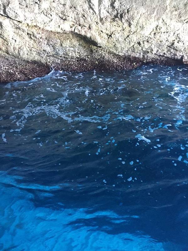 大部分游客都是乘坐快艇这里看一眼的,其实我觉得也没有太特别吧,就是有一些被海水冲刷成奇形怪状的岩石,蓝洞其实也没有特别大。