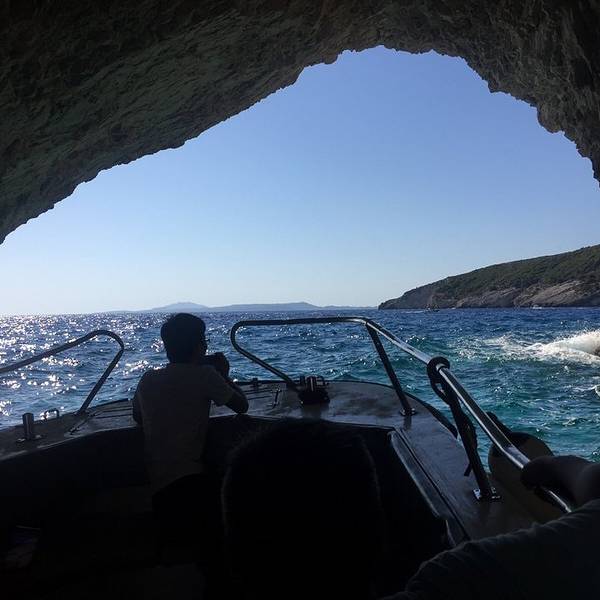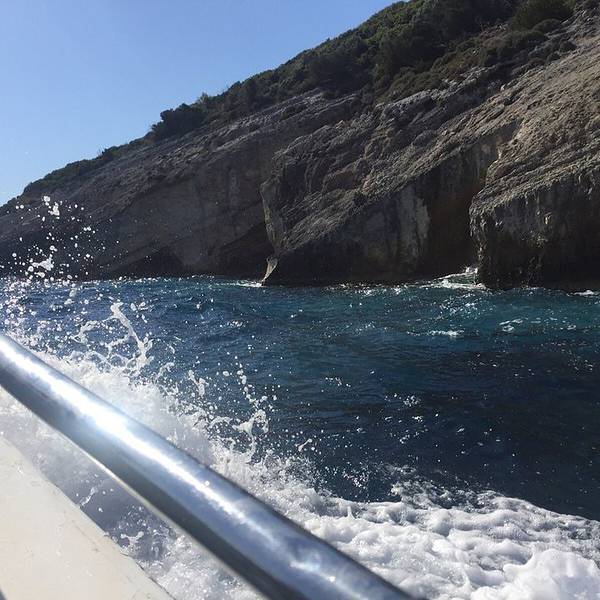 来到扎金索斯最吸引人的地方就是沉船湾和蓝色洞穴,从扎金索斯镇到海边快艇乘坐地方,路程开车大约1小时左右。去往蓝洞、 沉船湾都必须坐快艇。 一路上有会看到很多牌子说有去蓝洞和沉船湾的游船。还有好多个可以跳海(是指游泳跳海哦,不是你们想的那个什么哦~)的地方指示牌子。游览时间:2小时,我们去的时候是下午了2.3点时间,有的地方太阳已经照不到了,有点背光。 先坐上小快艇出发,先去沉船湾,返回的时候去往蓝洞,感觉他们都是在一条顺水的方向。快艇在海水前行,靠岸的一边有一些贫瘠的石灰岩山丘,也有许多深水湾和陡崖。到处都是蓝色,浅蓝、淡蓝、碧穹,天晴,清湛,水色,天河。。。真的会词穷的[]~( ̄▽ ̄)~*小快艇的好处就是可以进洞,只能直进直出,大小刚好够融合一艘小快艇,到洞里面就上空就是一片漆黑,水下透出蓝色的光,谜一般的蓝色,很美,很吸引人。建议:1.记得涂抹高倍翻晒霜,墨镜也不可少。 2.做快艇要顶得住晒,找个好位置,拍照漂亮 3.一路都是美景,记得看好自己的物品别掉水里,这里可是打捞不到的。