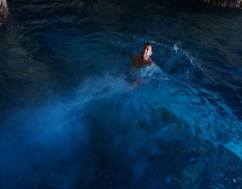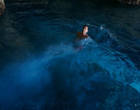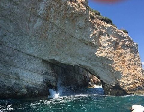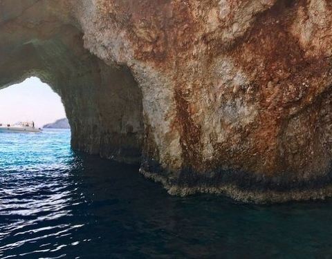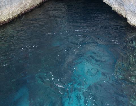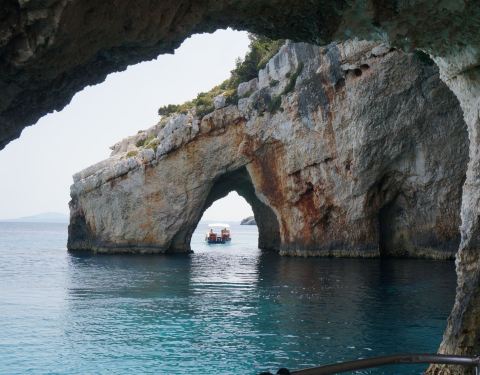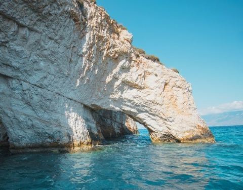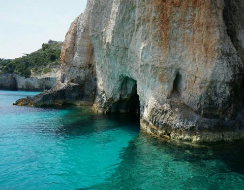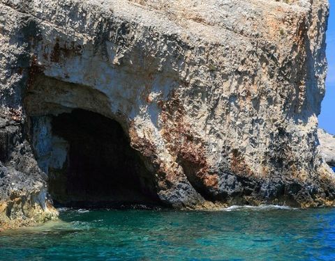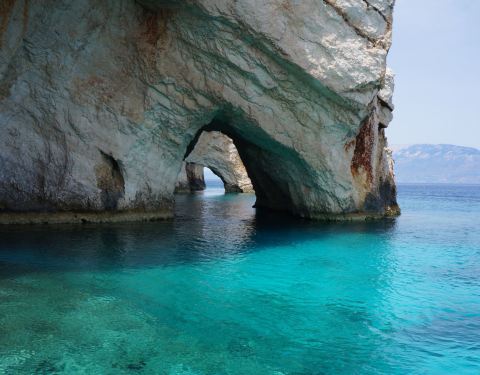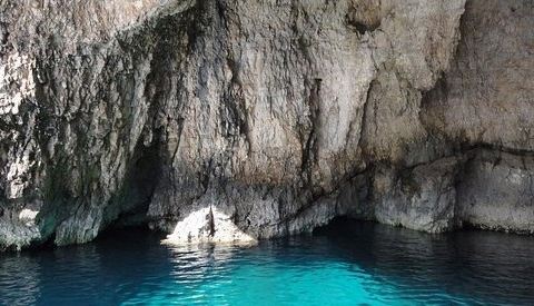蓝洞是扎金索斯最为著名的自然奇观,在海岸边的巨大礁石中,有一处宽大的洞穴