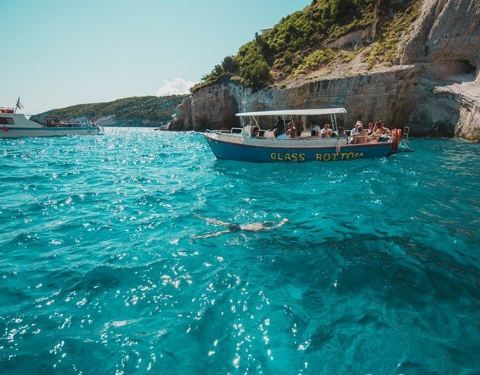 你只有到了扎金索斯,身临其境沉船湾、蓝洞,才能体会到那蓝得透明,像果冻一样的美,在这里可以游泳或潜水,畅游在碧海蓝天,一定会让你心旷神怡。