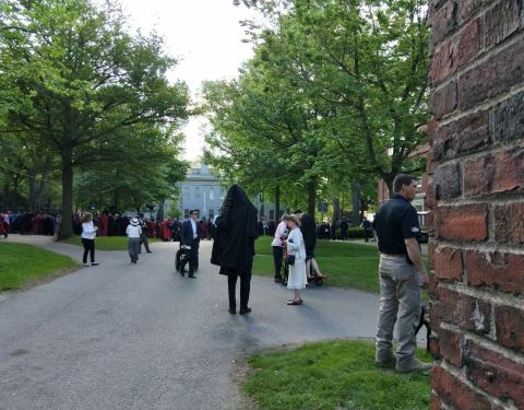 过来的时候适逢这边的毕业典礼,所以人非常的多,而且每一个都是穿着毕业的学士服,这就很有感觉了。 这边的绿化还做的真的不错,而且古建筑也挺多的,雕像方面就没有耶鲁大学那么多了,广场上平常冬天很少人,因为风挺大的。