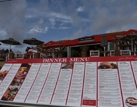 从早到晚,海滩上都是欧美游客在晒日光浴,海滩的餐厅有很多,消费不便宜,这里能够看到海中间不远处的龟岛