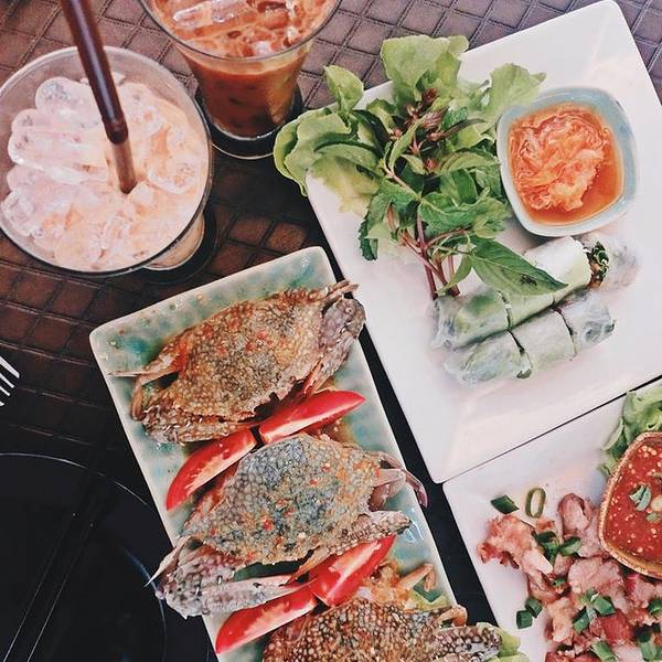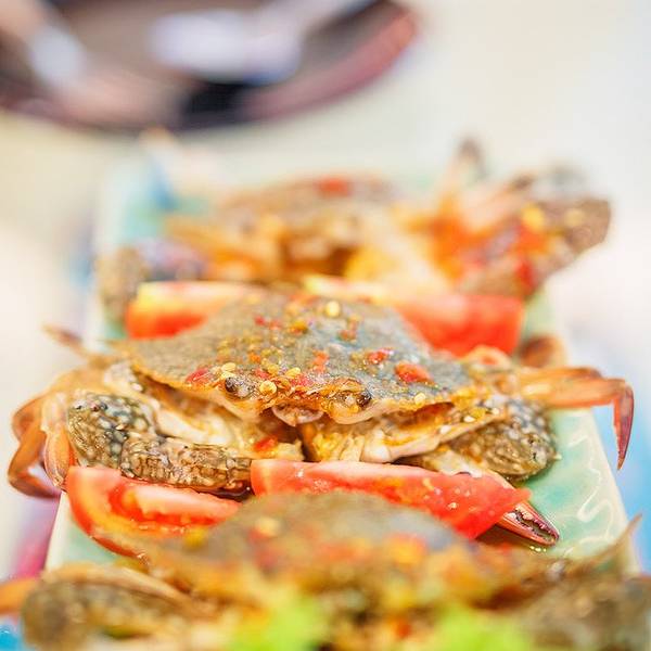 → Somtum Yokkrok(宁曼路) → 餐厅在Mango Tango附近,一栋白色的建筑给一片充满绿意的院子所环抱,用餐的环境也非常清新,炎炎酷暑下看到生蟹立马来了食欲,还有这里的猪脚饭也很棒,值得推荐! → 人均消费:150-200THB/人