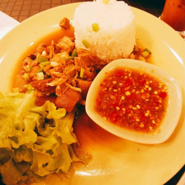 这是我们走之前去的最后一家网红店,somtum yokkrok,人气非常旺,需要提早一些过去,不然可能会需要排队,价格不贵,最推荐的是他们的猪脚饭,软糯可口,非常好吃,吃饭的时候还有一个小插曲,那天刚好是鹿晗公布恋情,隔壁桌刚好有个姑娘是他的粉丝,一直喊,不可能,不可能,他怎么可以这样,我吃不下饭,我不要吃了,哈哈哈。