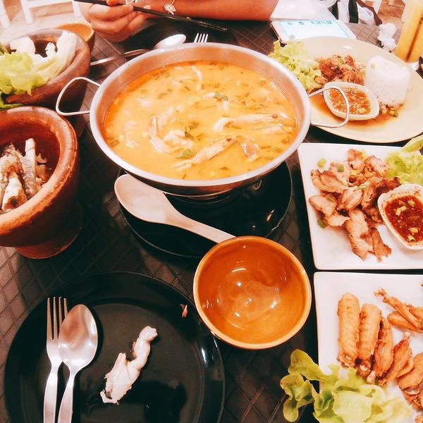 这家真的是我们在泰国9天吃到最好吃的一頓 除了美味 他还贵在是非常地道的泰国料理 很多菜不止国内没有 连泰国也没有再颠倒过 真的強力推薦 -- 海鮮沙拉 熟蟹 都是從來沒有嘗過的味道 兩個人又是60rmb左右 讚啦