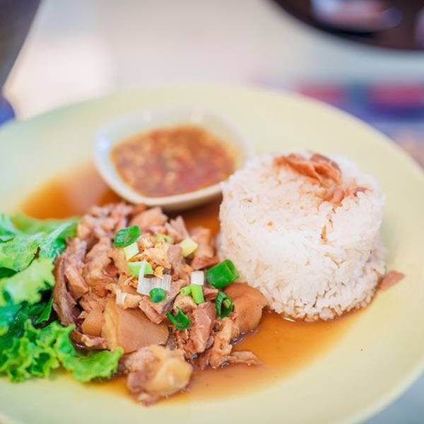 这是我们走之前去的最后一家网红店,somtum yokkrok,人气非常旺,需要提早一些过去,不然可能会需要排队,价格不贵,最推荐的是他们的猪脚饭,软糯可口,非常好吃,吃饭的时候还有一个小插曲,那天刚好是鹿晗公...