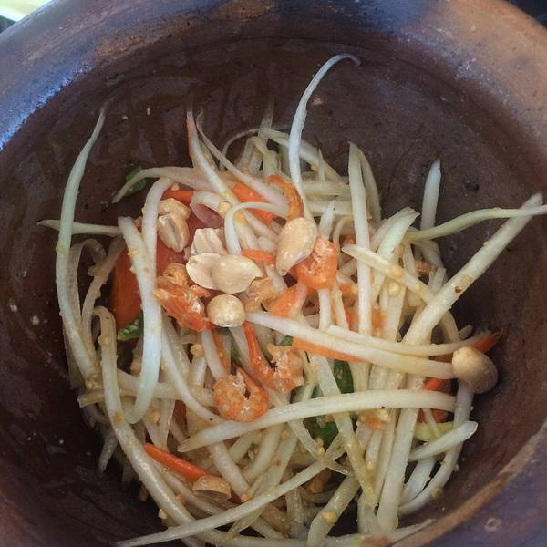 宁曼路上最值得推荐的美食莫过于泰北菜【Somtum Yokkrok】,还是无意翻阅的时候看到的,就在Mango Tango附近,酷暑难耐时看到了生蟹立马来了食欲。Somtum(宋丹)是青木瓜沙拉也是凉拌菜之意,Yokkro(罗阔)是用专做凉拌菜的砂盅托盛之意。 主打多种口味的青木瓜沙拉,咸蛋黄、螃蟹、虾、腌鱼。 爆爱这个酸辣冻生蟹,稍微放化一些再吃的口感赞到不行,酸辣爽口好吃到完全停不下来,连我这种不喜食酸的人都吃了好几份,炸鸡翅、猪颈肉也很好吃,而且价格也太便宜了,满满一大桌子也就是人均100元左右。还没被国人炒起来的小店噢,推荐大家来试试看!