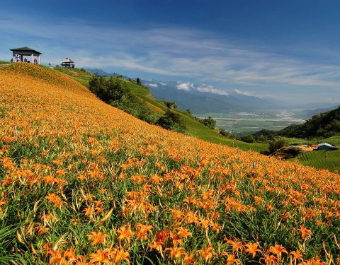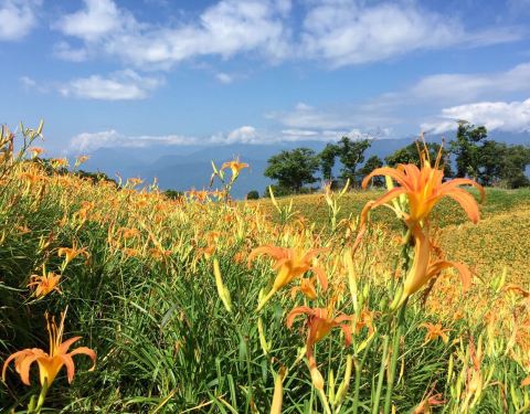 赤科山,位于花莲玉里镇附近,是欣赏金针花的好地方。8月初到9月底是金针花开的季节,大片大片的金针花很美丽。当然还有很多不知名的花朵,看到美丽的大自然就让人觉得好开心,蓝天白云花海。