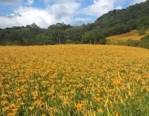 台湾赤科山,这里种了很多的金针花非常的漂亮黄灿灿的一片,适合来这里拍照哦,这里的环境也是非常不错的,喜欢的朋友不要错过这个景点
