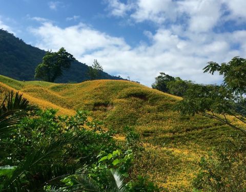...在8月份的时候去,因为8月份的时候整个山林都被一片花海占领了,全部都是金针花,黄灿灿的特别漂亮