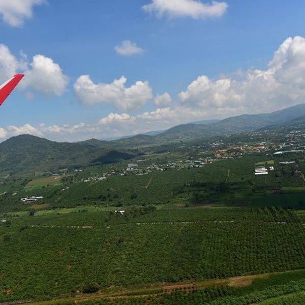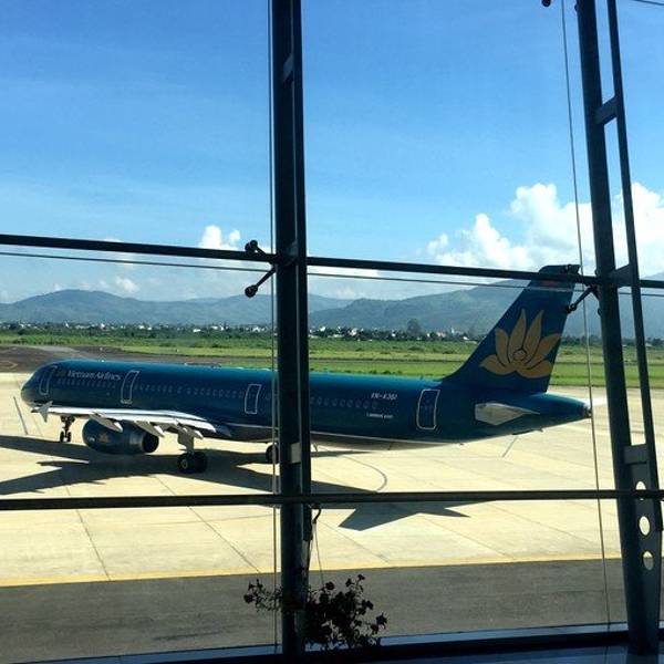 其实算下了,整个大叻行就告一段落了。 第二天早上很早就清好行李下去退房。 老板娘头天就问我们怎么走,我说可以做机场大巴吧。 然后就帮我们预订了今天早上一大早来接我们的大巴车 大叻机场大巴价格:40000VND(人民币12元)每人。 去大叻机场有点远,全是环山公路,可是一路真的太漂亮了! 就连唐三弟都说,这样的路走一天都不嫌累。 然而整个机场大巴也就3个人而已。清晨的大叻机场很安静,办理登记手续等了很久。 行李要求并不严格,我们20寸的都可以随自己登机 。 同时在阳光下我们告别了大叻, 再会