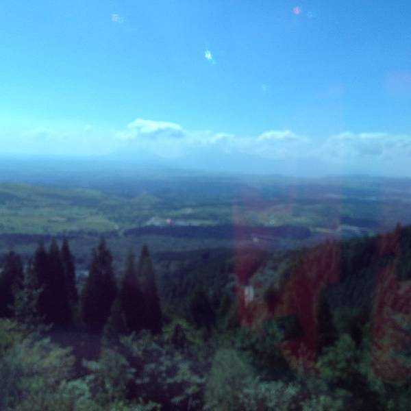 第3天的行程是坐上横断BUS去大分县的由布院小镇。 退房后黑川旅馆用专车送我们到了车站,离开时,店员热情真诚的欢送着实让我们又感动了一回。 坐上横断BUS,途径阿苏高原国家公园地区。这地方属于高原农场区域,坐在BUS上环绕着山坡层层迂回,牧场高原的美景历历收进眼底。