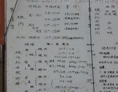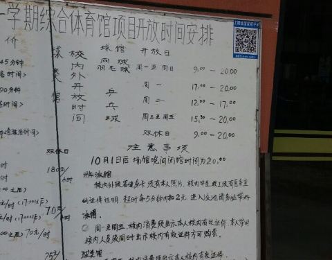 去财大参加一个培训,正好路过那里,就在武川路的门口。这个体育中心很有意思,门口有一块大白板,上面写着各种各样的时间安排,以及对外开放的时间表。体育馆,我到的时候还没有开门,但是从外观上来看,应该是...