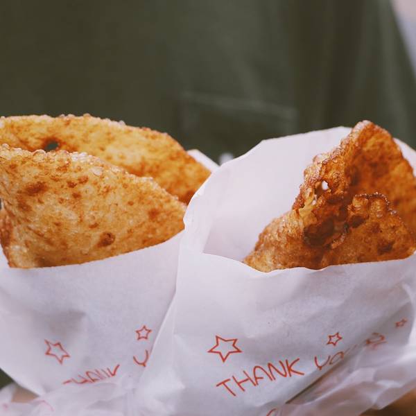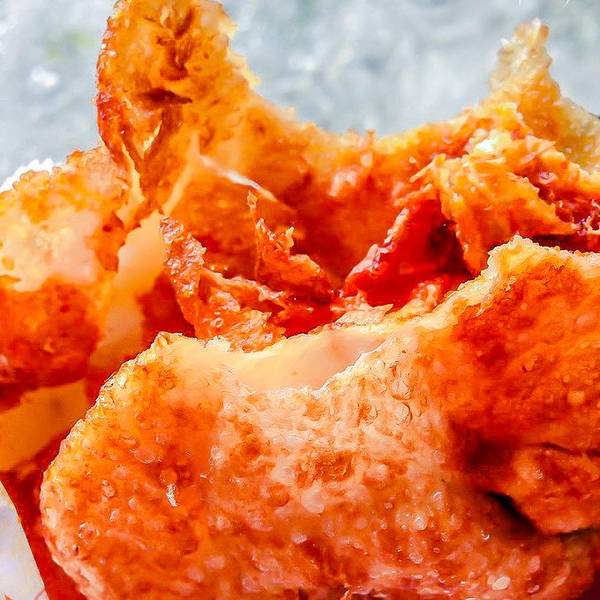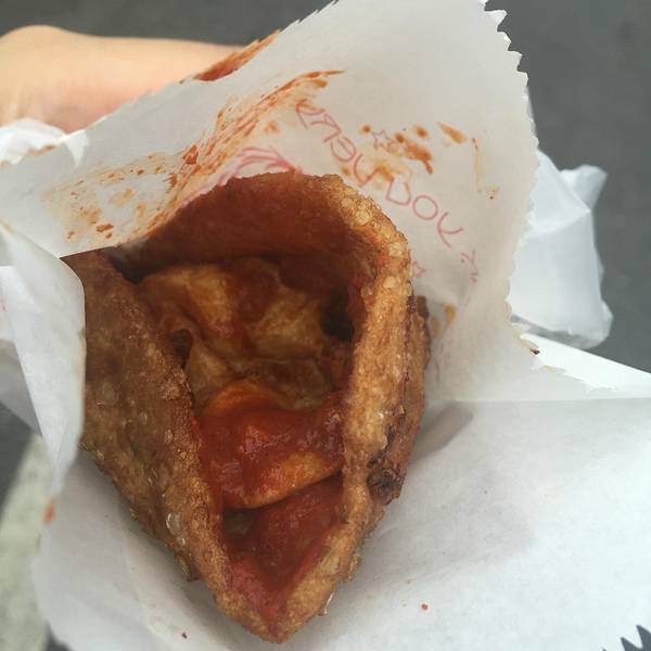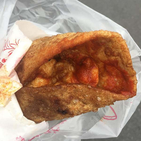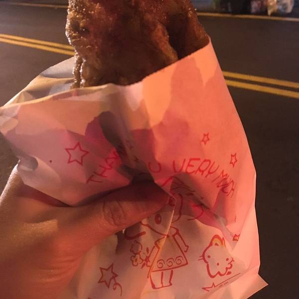 下午五点排队大概二十分钟的样子,卖家动作很快,但是也扛不住买家都是五六七八个的买呀。一口下去直接被惊艳到,外酥里嫩,虽然外表焦黄,但却没有丝毫油腻,溏心蛋也恰到好处(不爱溏心蛋的可以提前跟老板讲全熟哦)。吃的时候要留意一下,小心蛋黄流到手上衣服上,免得像我一样狼狈。