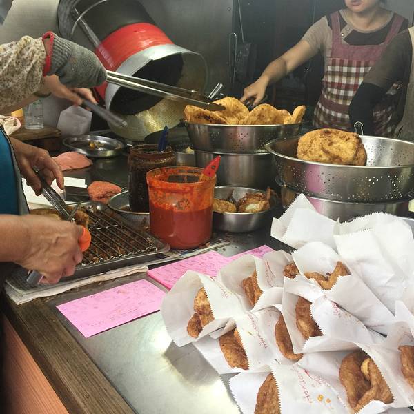下午五点排队大概二十分钟的样子,卖家动作很快,但是也扛不住买家都是五六七八个的买呀。一口下去直接被...噹噹噹噹~~强推强推强推!炸蛋葱油饼,离开 台湾 后都还魂牵梦绕的,一旦看到照片就忍不住吞咽几下唾沫。