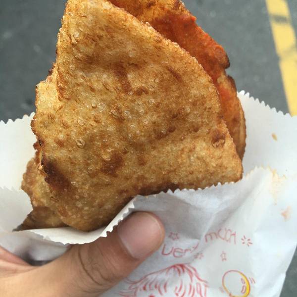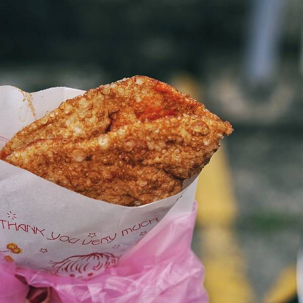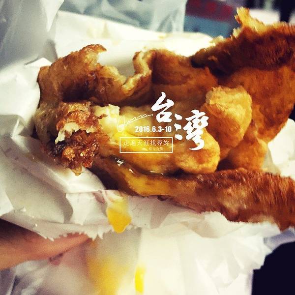 噹噹噹噹~~强推强推强推!炸蛋葱油饼,离开 台湾 后都还魂牵梦绕的,一旦看到照片就忍不住吞咽几下唾沫。 下午五点排队大概二十分钟的样子,卖家动作很快,但是也扛不住买家都是五六七八个的买呀。一口下去直接被惊艳到,外酥里嫩,虽然外表焦黄,但却没有丝毫油腻,溏心蛋也恰到好处(不爱溏心蛋的可以提前跟老板讲全熟哦)。吃的时候要留意一下,小心蛋黄流到手上衣服上,免得像我一样狼狈。