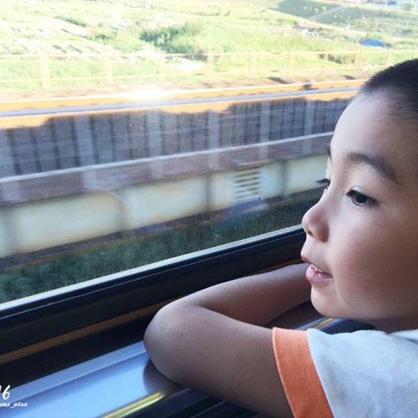 花莲的最后一站 炸蛋葱油饼 去到店铺看到长长的队伍 我们心想这么长得队伍 要赶火车 应该排不上吃不上了 侯师傅告诉老公 刚才已经打过电话来了 直接过去跟老板说有预订就可以了 老公下车买葱油饼的时候 侯师傅又跟我们介绍为什么一条路有两家葱油饼的典故 老公上车后 又不厌其烦地跟我们说一遍 虽然只短短相处两天 侯师傅的细心 周到 令我们在花莲不太出彩的行程画上浓重的一笔 最美的风景 永远是人在火车上 握在手上的炸弹葱油饼 还微微烫 香酥脆的外皮 油润的冰芯夹着还渗着浓稠蛋黄液的鸡蛋 除了觉得有点油腻 还是很好吃的平时喜欢乱窜的孩子 也安定下来注视着窗外的景色 天空开始明朗起来 一扫早上的阴霾 老公发短信至九份的民宿 被告知九份今天一整天都是大晴天 好天气 我们也怀着对好天气期待的心情渡过火车上的2小时