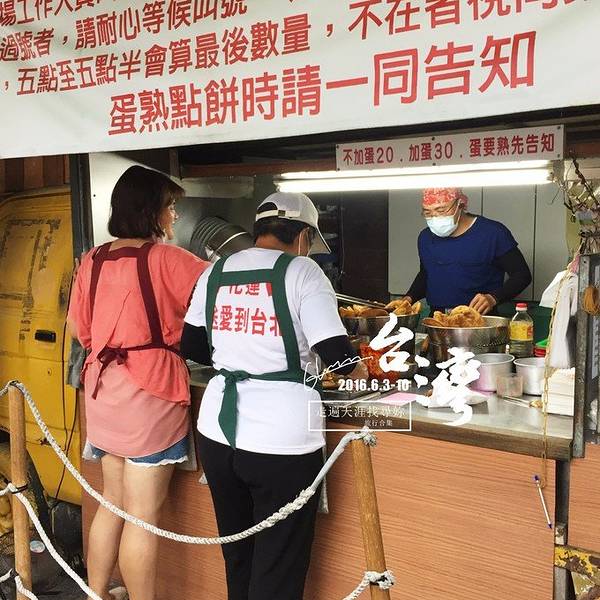 花莲的最后一站 炸蛋葱油饼 去到店铺看到长长的队伍 我们心想这么长得队伍 要赶火车 应该排不上吃不上了 侯师傅告诉老公 刚才已经打过电话来了 直接过去跟老板说有预订就可以了 老公下车买葱油饼的时候 侯师傅又...