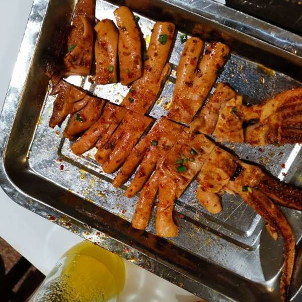 文和友到底吃什么的其实我也没搞清楚,是吃小龙虾么?反正点了龙虾和其他一些小食,口味还不错的。在里头吃饭是一种情怀吧。也许若干年后,提到长沙就想到文和友小龙虾,就好像说起成都就是火锅一样的根深蒂固。 薄荷凉粉很解腻,小龙虾吃的嘴唇发麻的时候来一口很爽。里头还放了火腿末?这个搭配挺稀罕,椒盐口味了。挺神奇的不难吃。 葱油粑粑就是咸口的葱油糯米糍,好吃,大晚上的特别开胃 烤物比较小块,类似于串串了。 会推荐给朋友,让来长沙的朋友来转转,长沙的新地标了