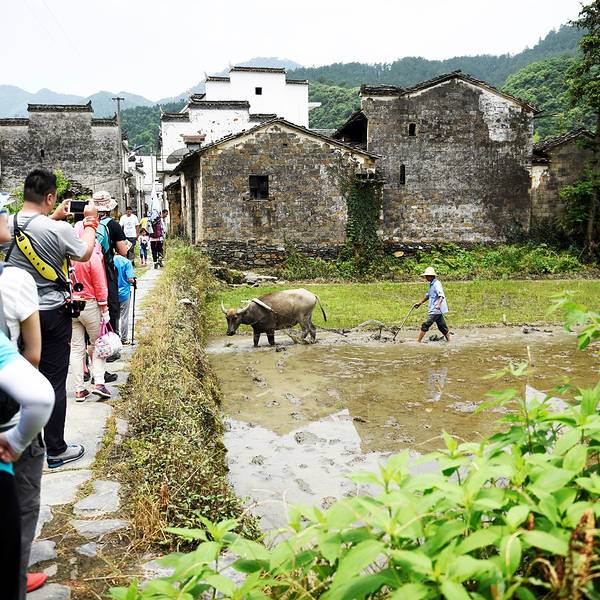 晓起村分为两个部分,上晓起村位于养生河的上游,下晓起村则在养生河的下游,两村之间是一条五百米长的古驿道——徽饶驿道。晓起茶亭多,大概是因为这里的村路是旧时的驿道,古风遗存的缘故。 晓起古驿道是婺源过去通往安徽的唯一出路,当年著名的婺源茶叶全是从这条道上运出山的。古驿道由青石条铺就,自下晓起接上晓起再向西入皖。石条一米来宽,道中央有深深的车辙沟,是独轮车年复一年轧出来的。晓起的独轮车直到上世纪末才渐渐停用。可以不夸张地说,整个晓起就是独轮车推出来的。现在公路仅通到下晓起,上、下晓起之间依然要靠古驿道,没有第二条路,独轮车名成身退后,如今古驿道上的主力车型是和独轮车差不多的架子车,上晓起稍大些的物质还是要靠肩拉手推才能运进运出。