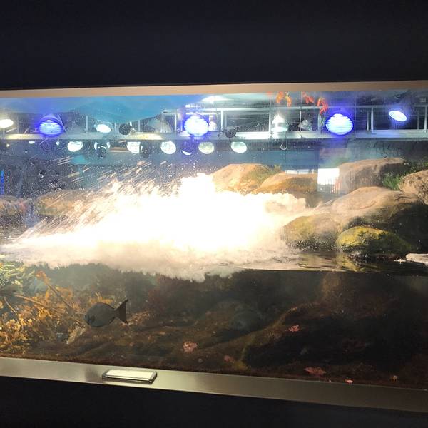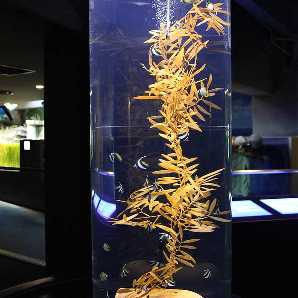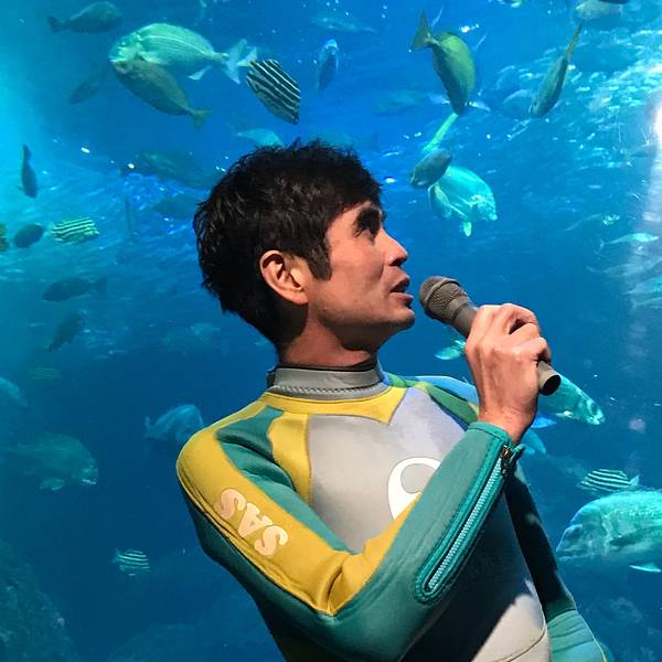 水族馆的第三个特色,是在水族馆的中央大水槽,每天有不同时段,会有潜水员潜导水槽中,用水底摄像机直播介绍海洋动物,展馆水槽外的游客,可以看到直播全过场,可以向潜水员现场提问,关于这些海洋动植物、鱼类的问题。