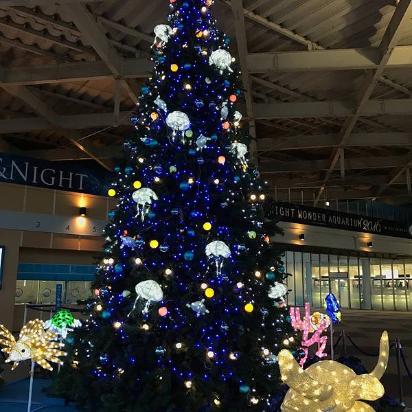 小伙伴在黑乎乎的地方实在扛不住了,就是站着也能睡着的那种,就干脆睡觉了。。。结果就错过了海豚表演。。。这个海洋生物说是今年2016年12月1日在关东第一次公开的,我们也算是赶巧了看到。你们都知道日本的天王是研究海洋生物的学霸吧~看到了可爱的小企鹅肥肥的海豹这个鱼超好看圣诞装扮的鱼缸海豚们水族馆表演的场所,一墙之隔之隔就是大海了,其实后来想想觉得海豚也真的挺可怜的,现在很多人都在呼吁不看动物表演。