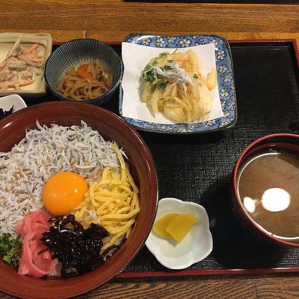 看完水族馆,我们在附近的餐厅吃了中饭,来都来了还是要尝一下当地特色的小银鱼盖饭的,但没敢挑战生的,选择了熟的小银鱼盖饭,生的话就是しらす丼,熟的是釜揚げ丼。熟的一点都不腥,生鸡蛋也不会腥,没有什么味道,比较清淡。 展开
